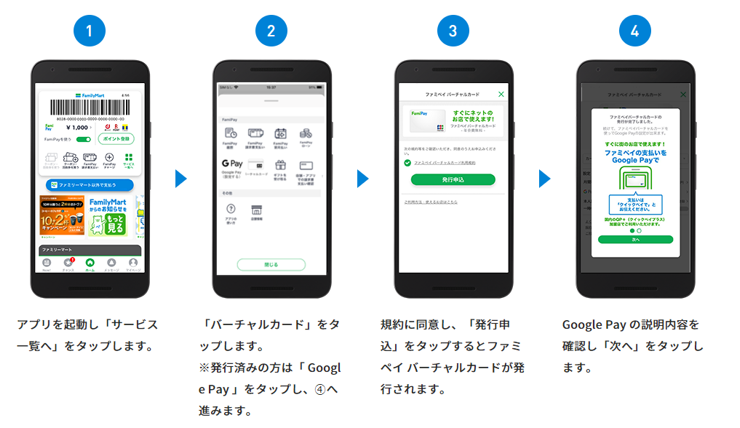 - ファミペイ バーチャルカードの発行手続き及び Google Pay 設定の流れ