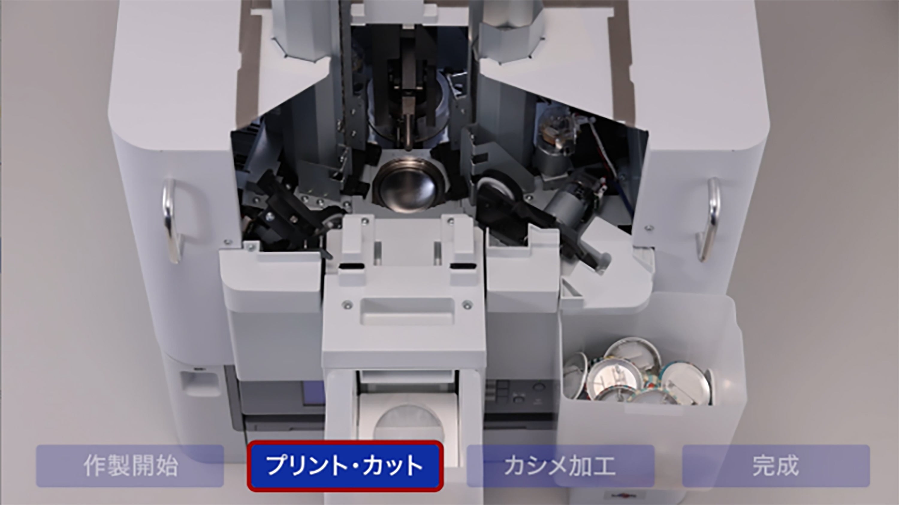 従来のカンバッジ製造では、別々に行っていたプリント、カット、圧着の工程を、「BB1-5700」は全自動で行うため、省人化が図れる。「受注が増えても、人の確保が難しい」といわれる、製造現場の人員不足の課題も解決する。