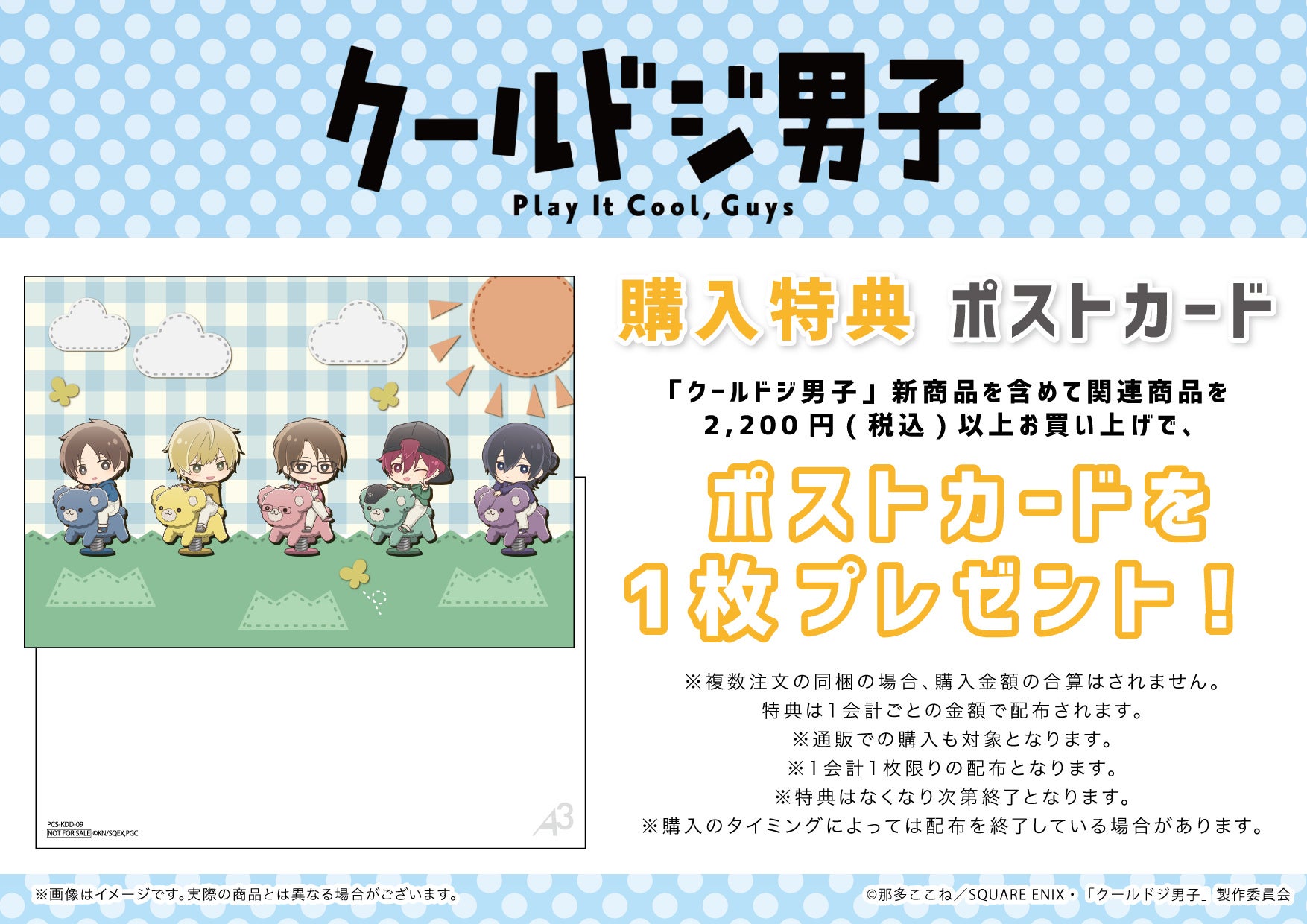 『クールドジ男子』新商品を含めて関連商品を2,200円(税込)以上お買い上げで、購入特典としてポストカード(全1種)をランダムで1枚プレゼントいたします。