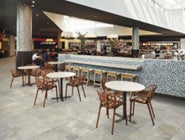 異なる4種類の形状を組み合わせたフレンチパターンが特長のタイルです。ウォーム系のやさしい色合いはナチュラルな空間にマッチし、開放的なホテルやマンションエントランス、路面店など屋内と屋外がつながる空間を一体感ある仕上がりにします。