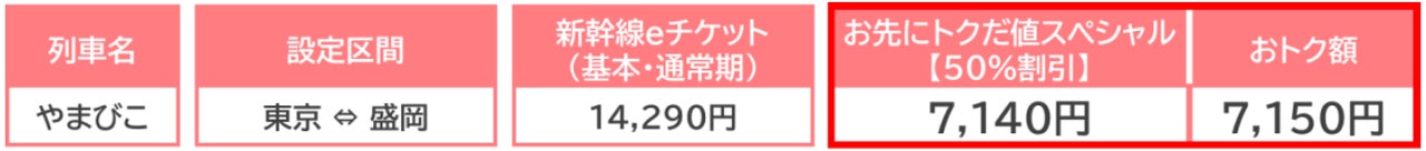 2024年1月~3月で実施する「しあわせな予感♥いわて冬旅キャンペーン」に合わせて、東京・上野・大宮⇔岩手県内の新幹線全駅に「乗車券+特急券」が50%割引となる「お先にトクだ値スペシャル」を設定します。