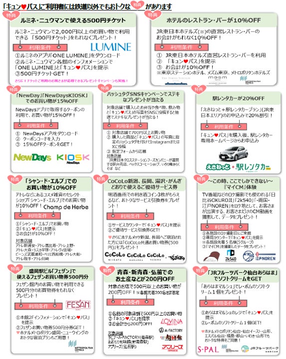 ○特典:「キュン♥パス」ご利用者には鉄道以外でもおトクな特典があります(別紙参照)