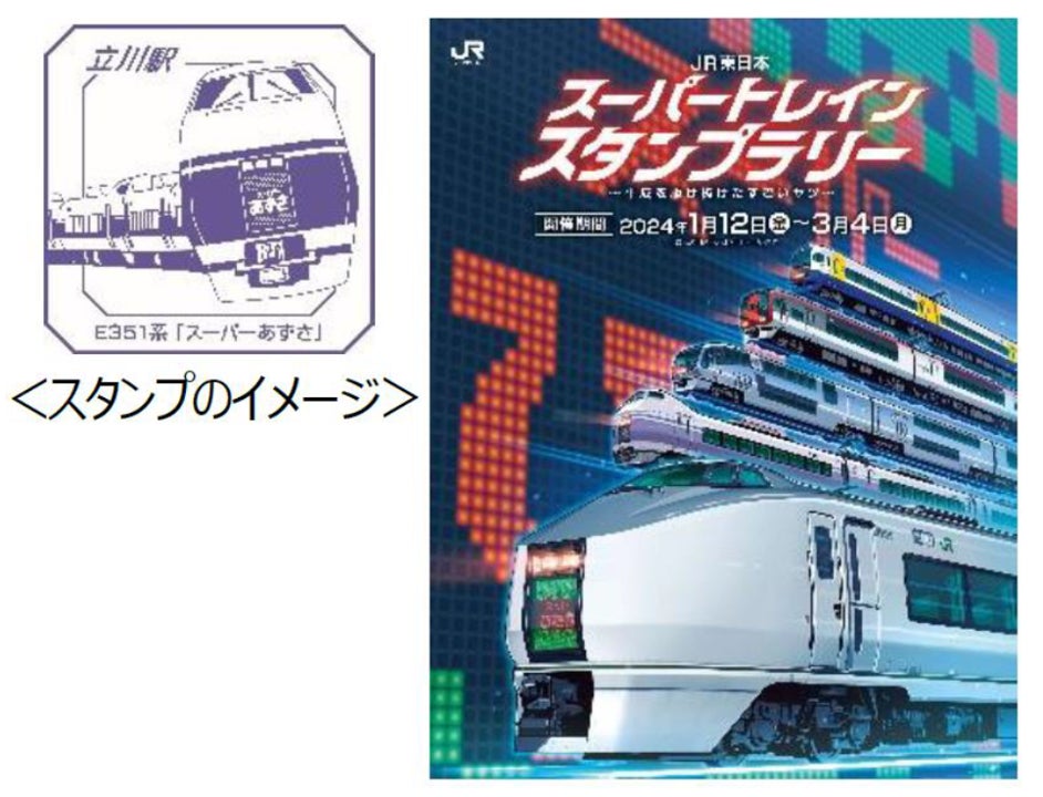 当時、「タキシードボディのすごいヤツ」と呼ばれ多くの鉄道ファンを魅了した651系やE351系「スーパーあずさ」、251系「スーパービュー踊り子」などのスーパートレインが首都圏50駅と盛岡・山形・秋田・新潟・長野駅にスタンプとなって登場します。スタンプを集めた方にはオリジナル鉄道グッズや、抽選でホテル宿泊券などをプレゼントします。