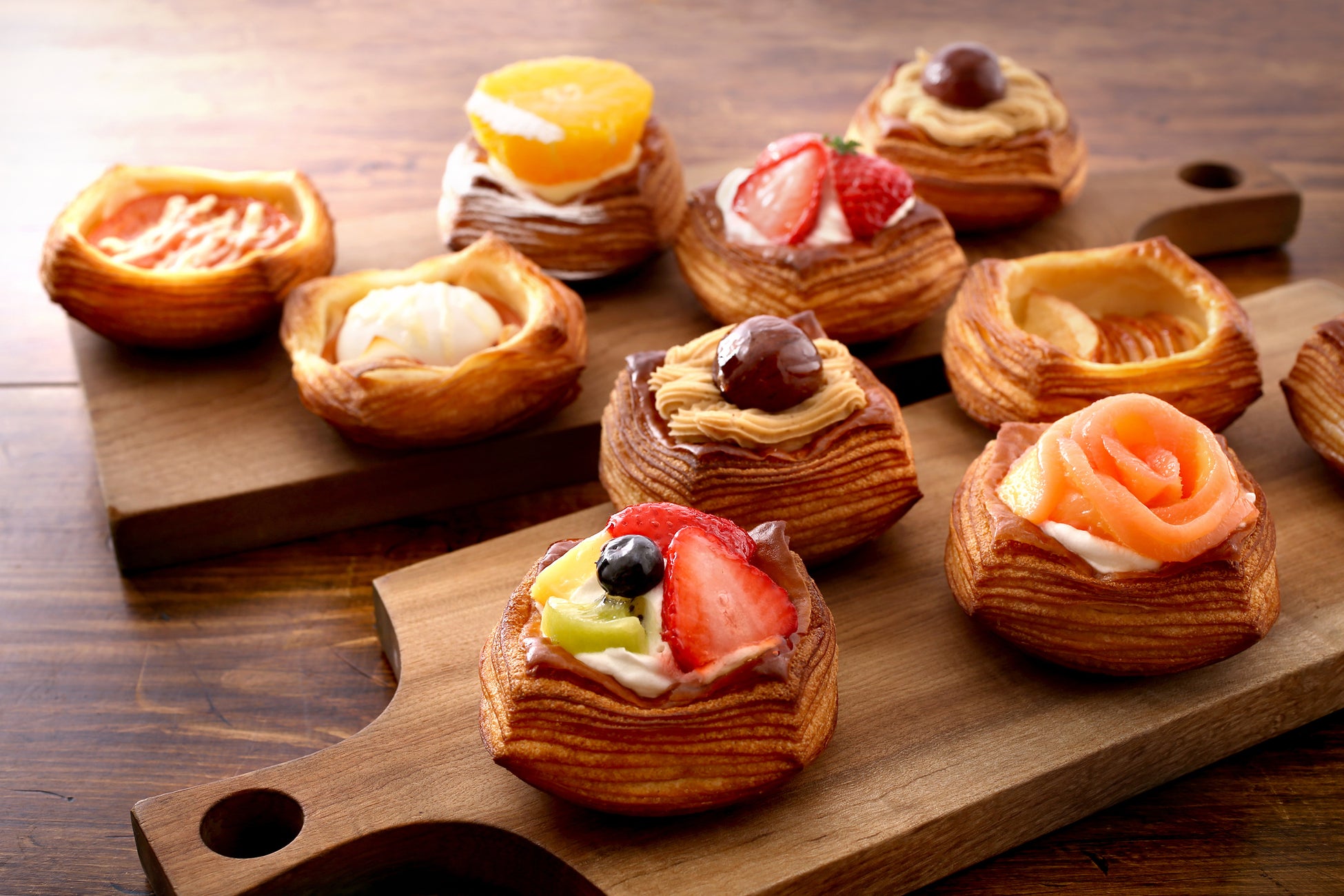 サクサクっと香ばしいデニッシュ生地に、 彩り豊かなフルーツや惣菜を合わせたダノワーズをご用意しております。