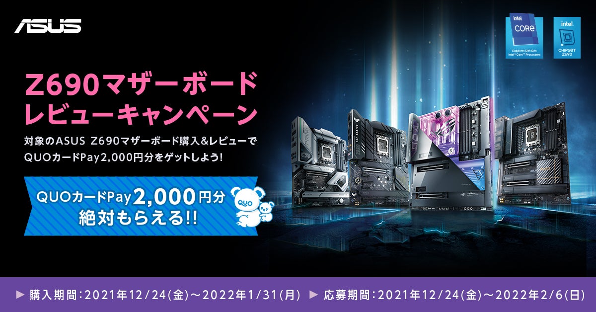 ASUSのINTEL Z690マザーボードを購入してQUOカードPayがもらえる購入キャンペーンとレビュー投稿キャンペーンを開催
