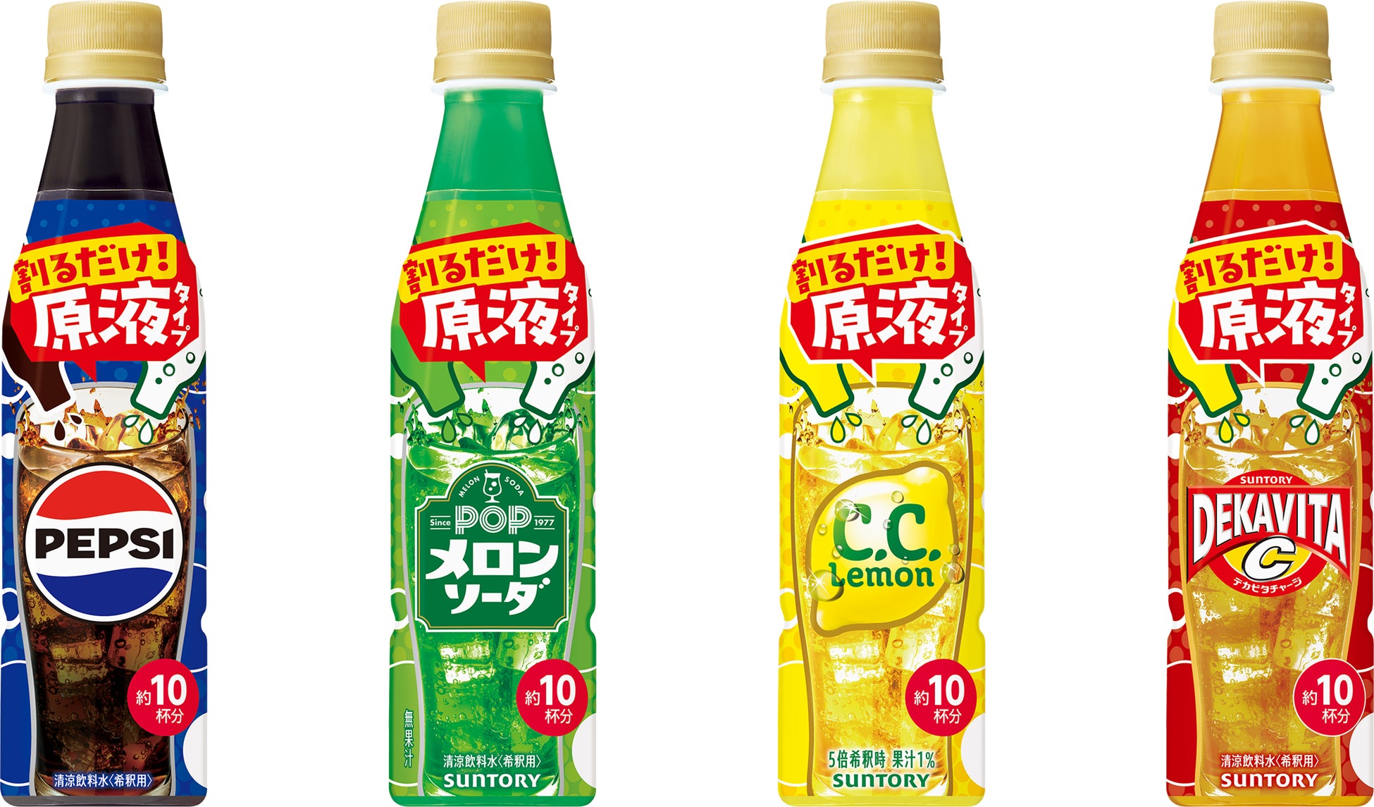 「ペプシコーラ」「POPメロンソーダ」「C.C.レモン」「デカビタC」4品と「すみっコぐらし」オリジナルラバーコースターがセットになっています。おうちドリンクバー1:炭酸水4で割ることで、簡単に美味しい炭酸飲料ができあがります。年末年始の家族の集まりや友達とのパーティーなどで、「おうちドリンクバー」のさまざまなアレンジをお楽しみください。