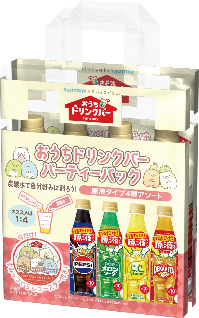 サンエックス株式会社(本社:東京都千代田区)は、サントリー食品インターナショナル株式会社(所在:東京都港区)とコラボレーションした、「すみっコぐらし」オリジナルラバーコースター付きの「おうちドリンクバー 4種アソートパーティーパック」を12月2日(火)から全国で期間限定発売されることをお知らせします。また、12月1日(月)より、「すみっコぐらし」オリジナルホームパーティーグッズなどが当たるキャンペーンを実施します。
