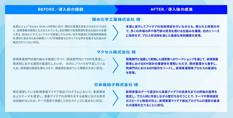 結果、参画企業における2023年度の「HiPro」利用社数は昨対比で15倍、案件数は20倍以上に。これらの取り組みを通じて、新規事業創出におけるさまざまな成果が生まれています。