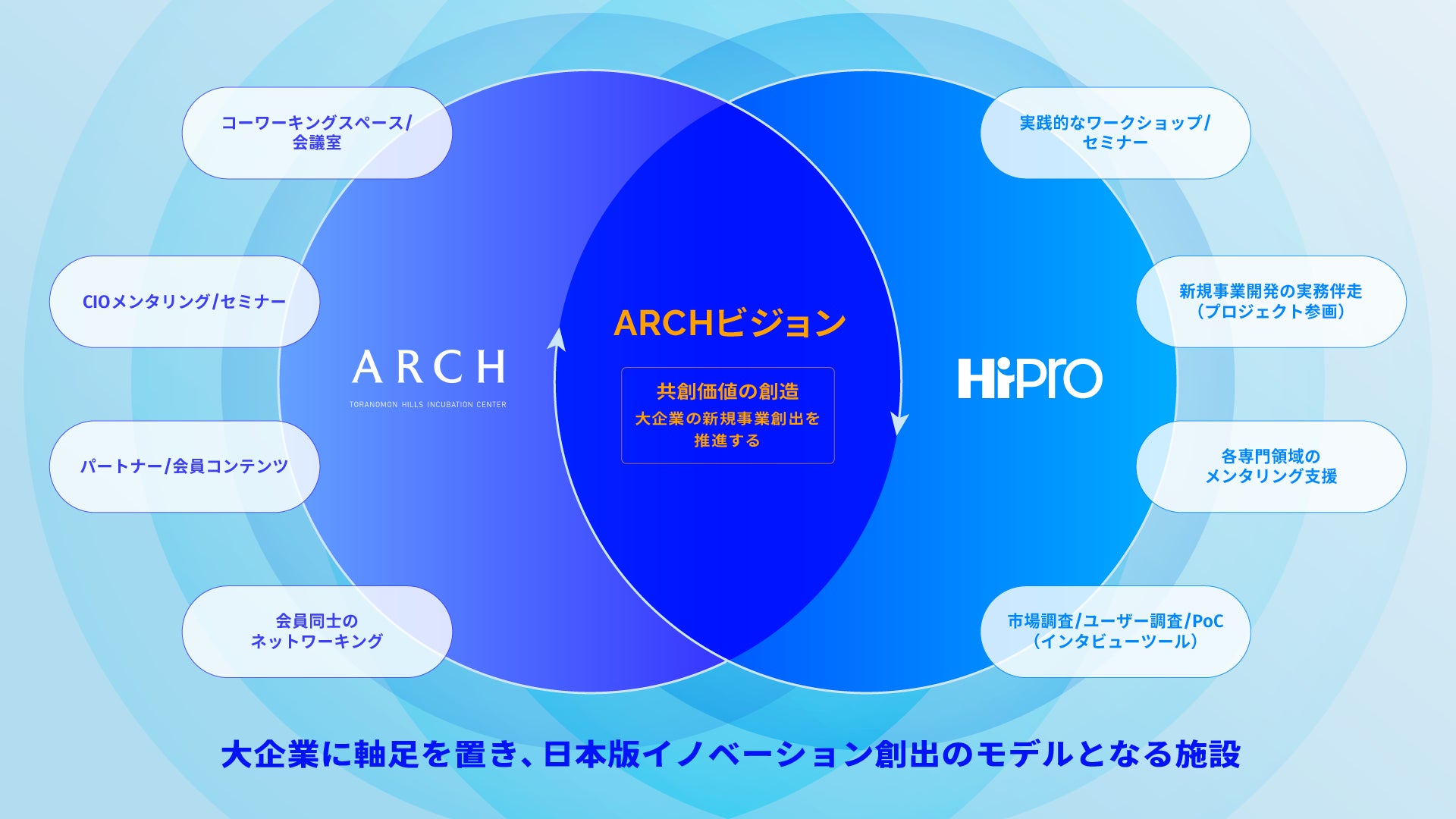 転職サービス「doda」などを提供するパーソルキャリア株式会社のプロフェッショナル人材の総合活用支援サービス「HiPro(ハイプロ)」< https://hipro-job.jp/ >は、2024年7月より、森ビル株式会社が企画運営する大企業の新規事業創出に特化したインキュベーション施設「ARCH Toranomon Hills Incubation Center」(以下「ARCH」)の運営パートナーに就任したことをお知らせします。
