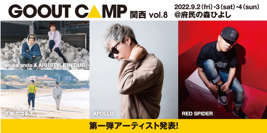 ダンスホール・レゲエ・シーンにおいて、20年以上にも渡ってトップ・ランナーとして活躍を続ける「RED SPIDER」、そして早口スタイルと歌心あふれるフロウで人気の「APOLLO」が登場。さらに、ラヴァーズ・ロックレゲエシンガーasuka andoがユニット「asuka ando & ARI (STYLE IN DUB)」にて出演するほか、GO OUT CAMPのレギュラーバンド「D.W.ニコルズ」も決定。