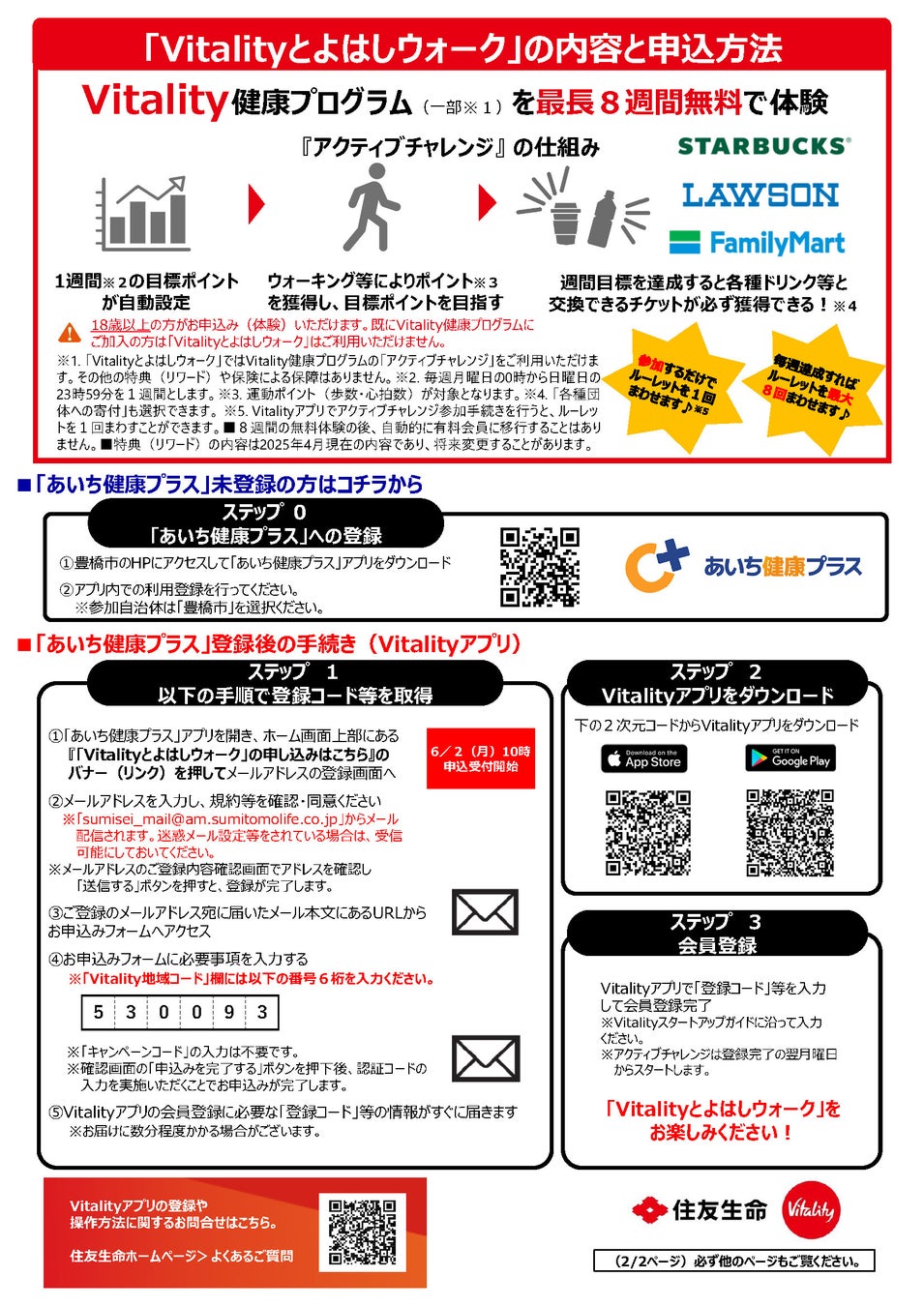 (既にVitality健康プログラムにご加入の方は「Vitalityとよはしウォーク」はご利用いただけません)