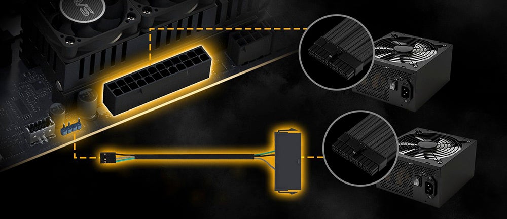 マルチ PSU アダプターケーブルと ATX_Con ヘッダーを使うことで、2nd電源を追加することが可能です。