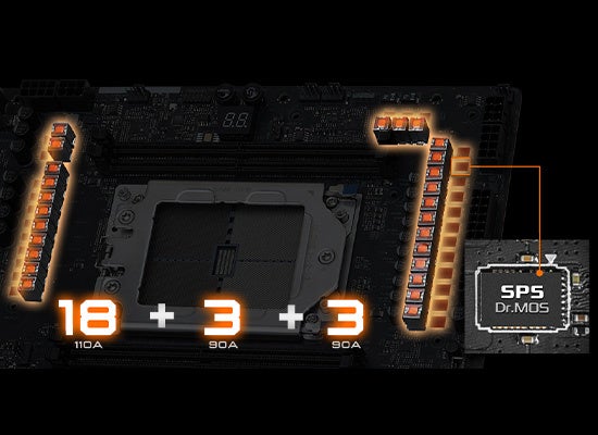 18+3+3電源フェーズ設計によるCPUへの円滑な電源供給による高いパフォーマンスを発揮。