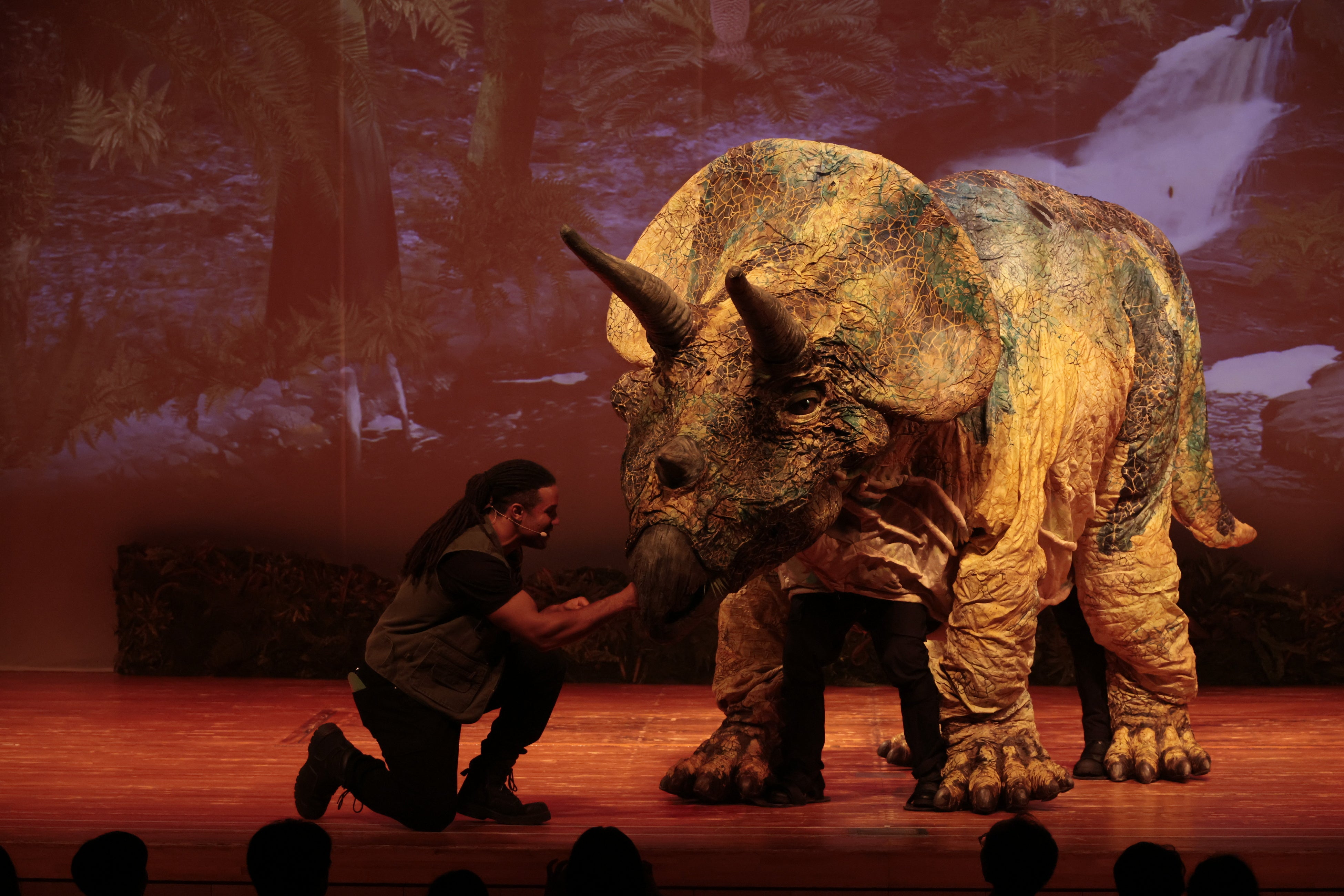 かわいい赤ちゃん恐竜から大人気のトリケラトプスまで登場する迫力のステージ!
