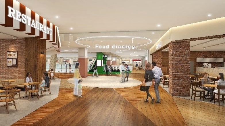 施設3階において、フードコート18店舗、飲食店13店舗を集積した「広大な飲食ゾーン」が誕生します。