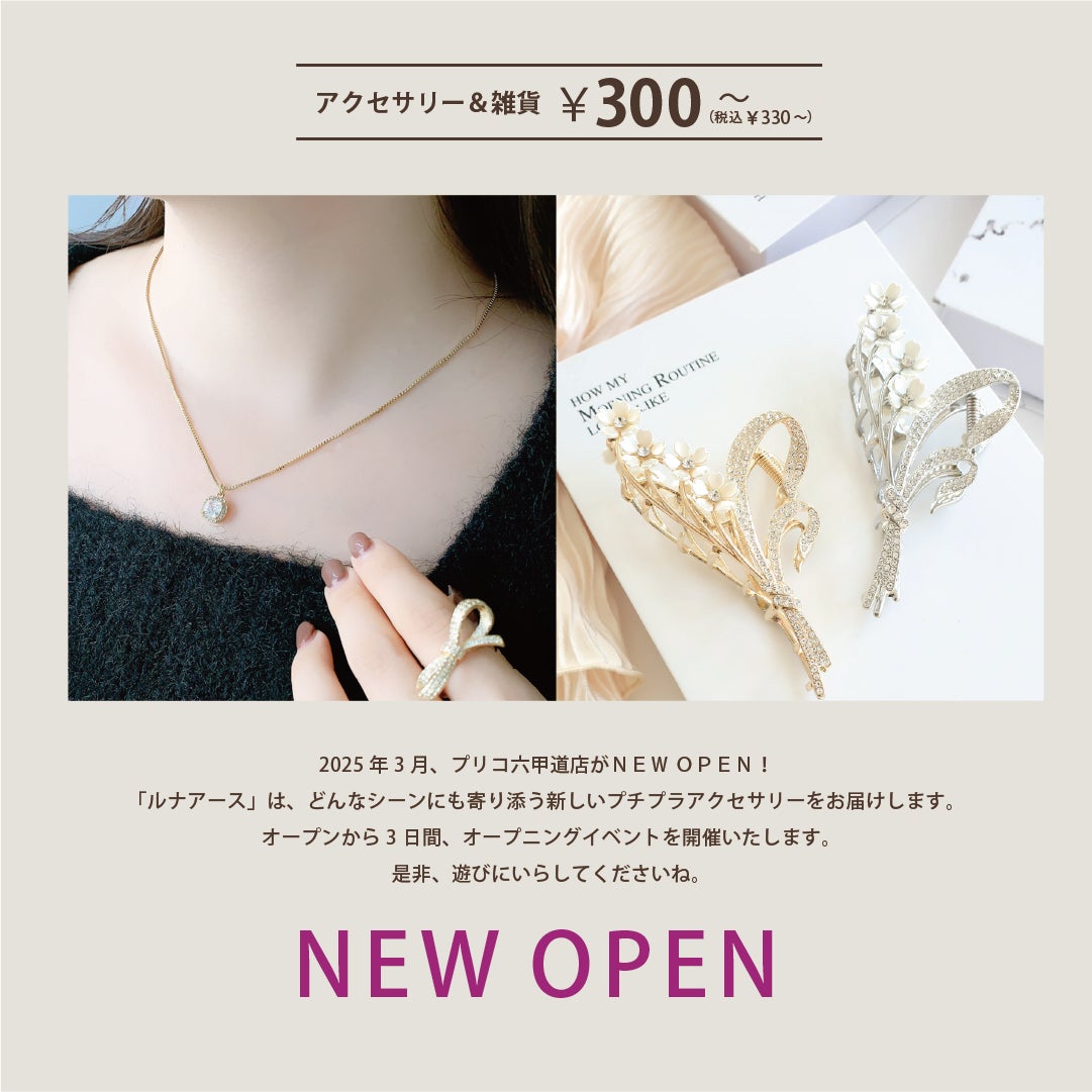 330円(税込)~アクセサリーブランド「LUNA EARTH」がプリコ六甲道店3/1(土)オープン