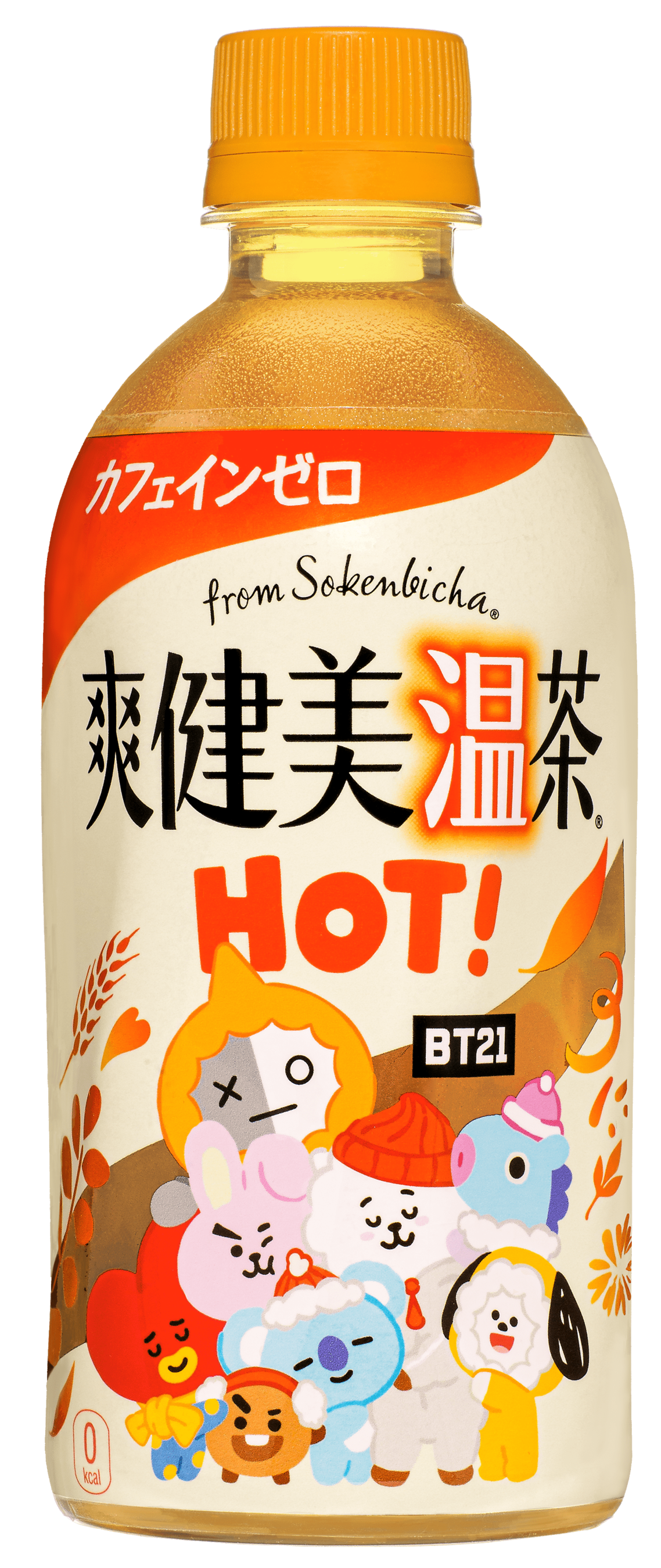 カフェインゼロで、花椒やひはつをブレンドした寒い季節にぴったりの温かい「爽健美茶」は、「爽健美温茶」BT21オリジナルデザインボトルを通じて、寒い中がんばっている方々の毎日に“愛”をとどけていきます。