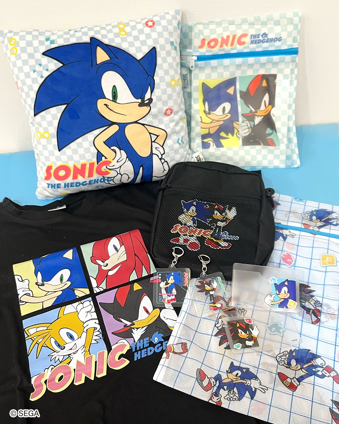 今回登場するアイテムは、対照的なキャラクター性を持つ「ソニック」と「シャドウ」の魅力を引き立てる、対デザインに仕上げました。キャラクター紹介風の「アクリルキーホルダー」や「クッション」などのファン心をくすぐるアイテムから、デイリーに使える「Tシャツ」や「ショルダーバッグ」などのファッションアイテムまで、幅広いラインナップで展開します。