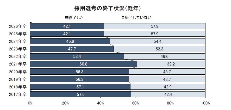 採用選考を「終了した」42.1%。4年連続で半数を割り込んだ