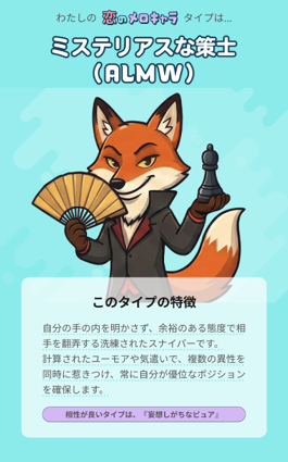 「自分では普通に接しているつもりだけど、異性の目にはどう映っているんだろう?」 そんな、自分でも気づいていない「異性の前の自分」を16種類の可愛いキャラクターで可視化するのが「恋のメロキャラ16タイプ診断」です。