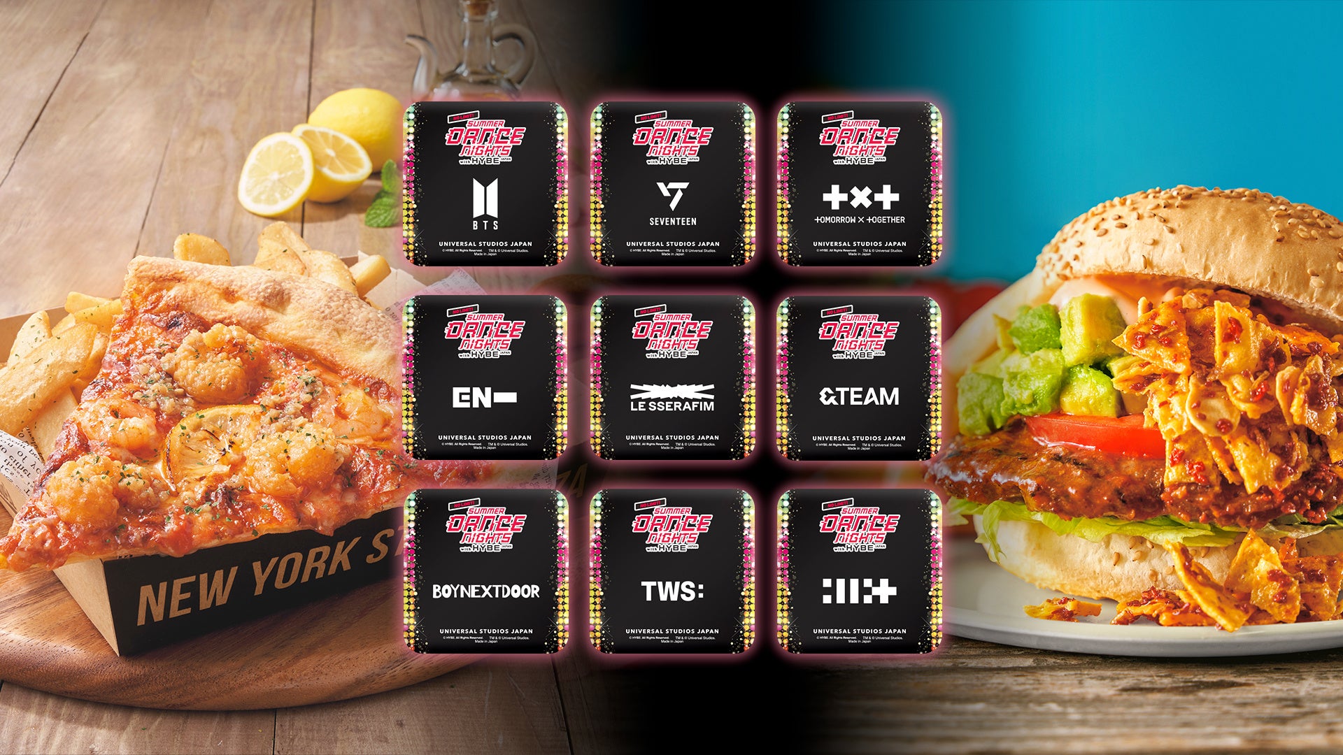 また、ビッグサイズの本格派ピザを味わえるピザパーラー『ルイズ N.Y. ピザパーラー』とハンバーガー・レストラン『メルズ・ドライブイン』では、HYBE MUSIC GROUPの人気アーティスト9組のロゴマークをデザインした、クールなコースターと大満足のセットメニューが楽しめる特別メニューが登場!セットメニュー1つにつきランダムで1枚お渡ししているので、コレクションしてお楽しみください。さらに、9組のアーティストそれぞれをイメージした、爽やかなドリンクが登場! 一緒に付いてくるカップホルダーに入れて、パークを楽しもう!