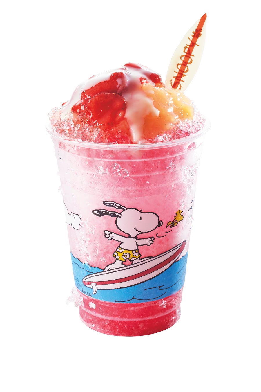 さらに、毎年恒例の夏を涼しく過ごせるひんやりスウィーツも充実しています!『マリオ・カフェ&ストア』には、いちごの甘酸っぱさとソーダののど越しが夏にぴったりのソーダスムージーが今年も登場。サーフィンを楽しむスヌーピーが描かれたいちごミルクと白桃のひんやりしたフラッペなど、ひんやりスウィーツで、体を芯から冷やし“超爽快”に夏のパークをお楽しみください。