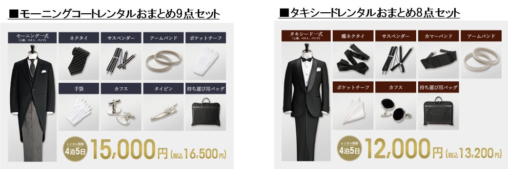 『AOKIレンタルサービス(A・R・S)』は、モーニングコートとタキシードに必要な一式を4泊5日でレンタルできるサービスです。往復配送料無料でご自宅に礼装一式が届き、着用後はクリーニングすることなく返却できるため、気軽にご利用いただけます。