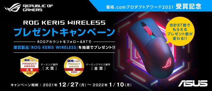 価格.comプロダクトアワード2021受賞記念 「ROG KERIS WIRELESSプレゼントキャンペーン」を開催