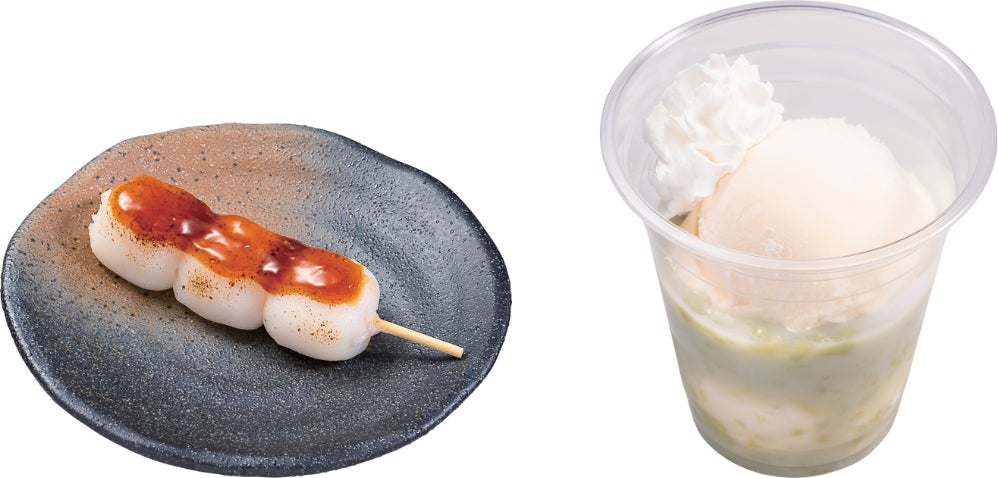 かっぱ寿司の和スイーツ“ふわもちみたらし団子”と“まぜまぜシェイク ずんだ&バニラ”の二皿をセットにしました。