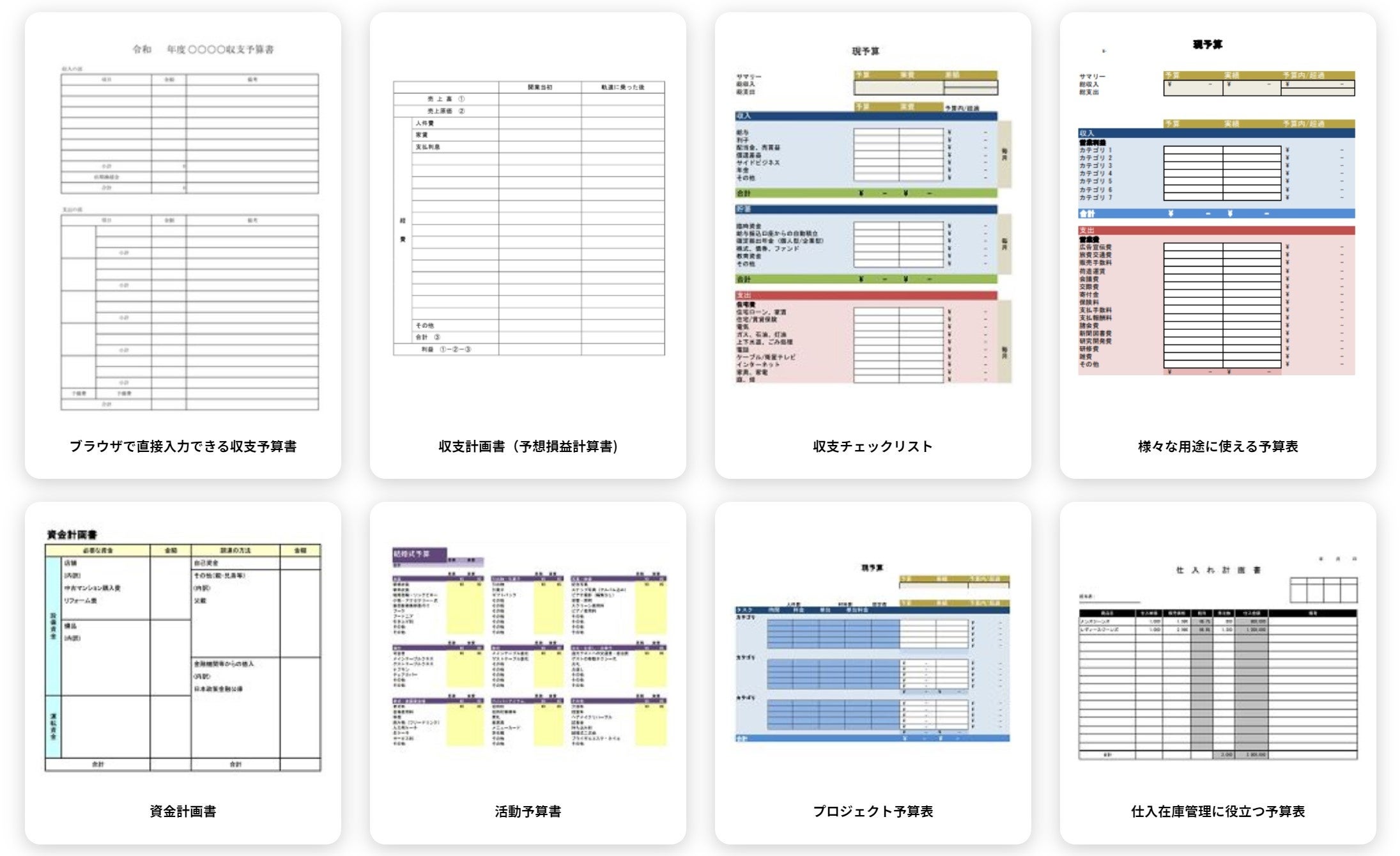 収支予算書・資金計画書・活動予算書・プロジェクト予算表など
