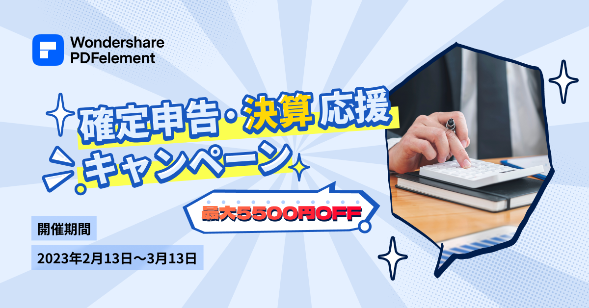 - PDF編集・作成ソフト「PDFエレメント」より確定申告・決算応援キャンペーンを開始