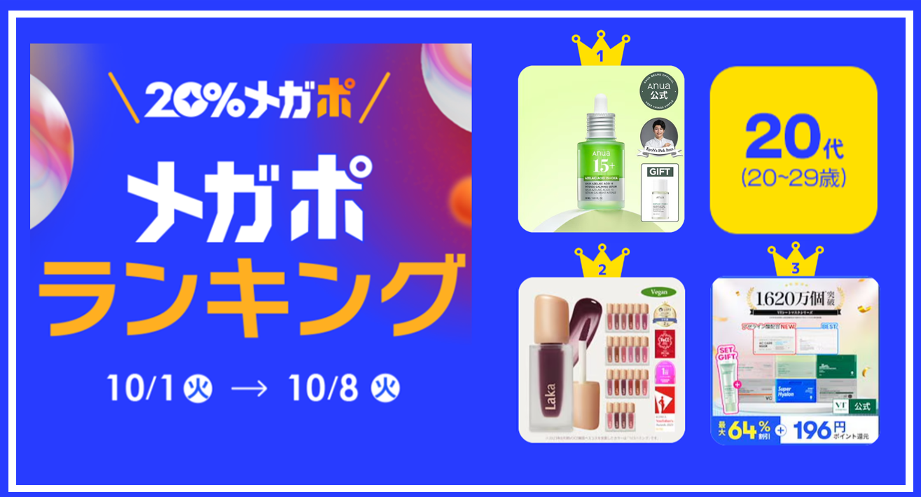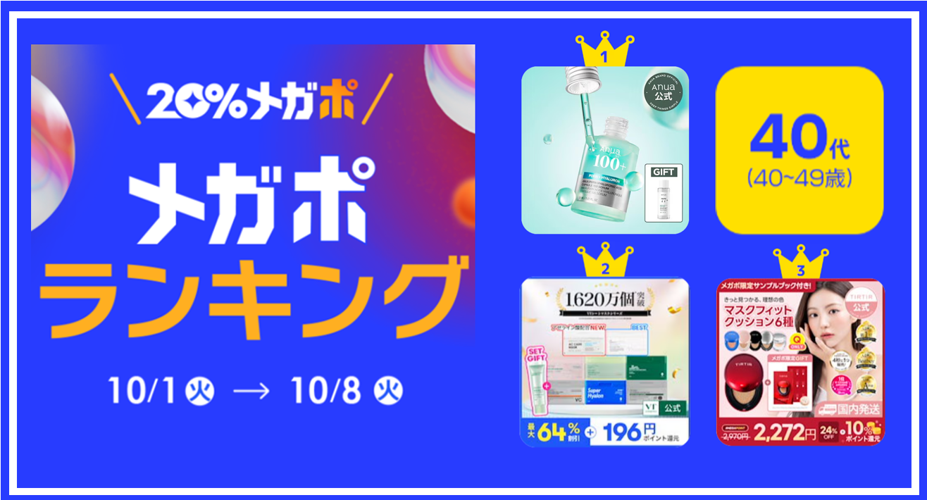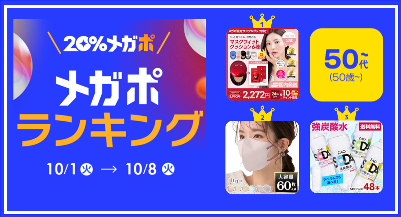 <Qoo10、秋の「20%メガポセール」開催レポート>年代別のメガポランキングを発表!