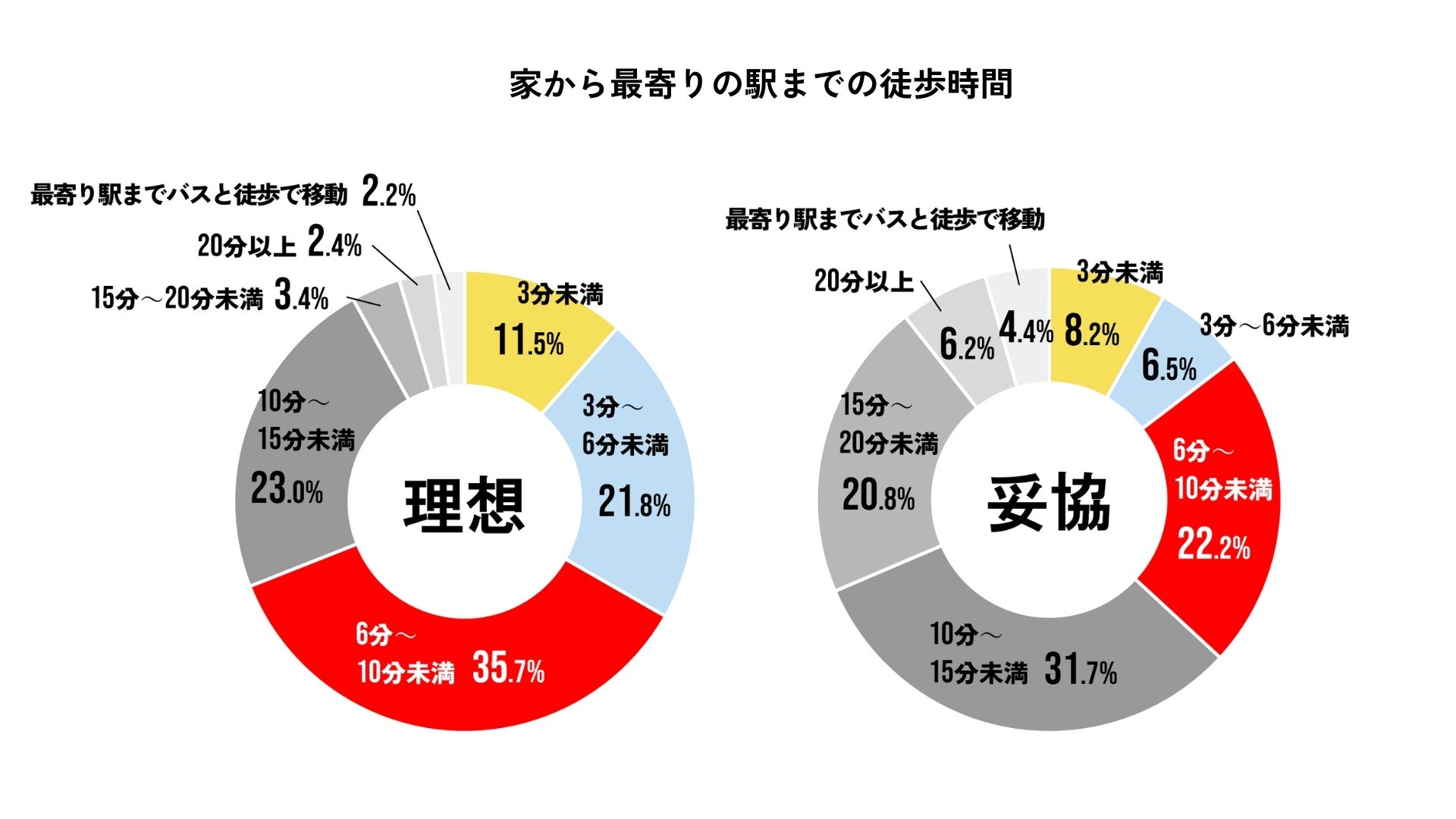 理想は駅徒歩6分未満が3割!10分未満合計だと69.0%に