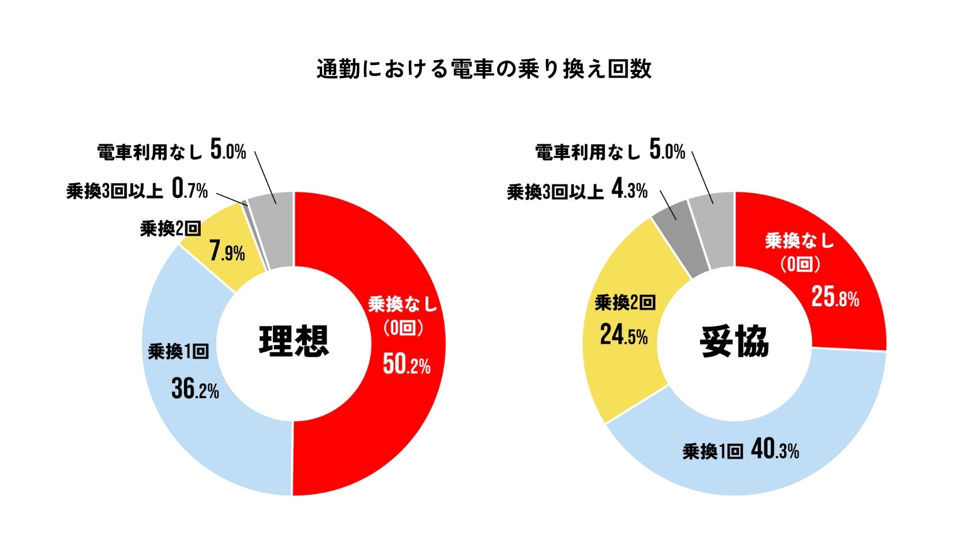 ・理想では乗り換えなしが50.2%と過半数。乗り換え1回も36.2%と高い結果に