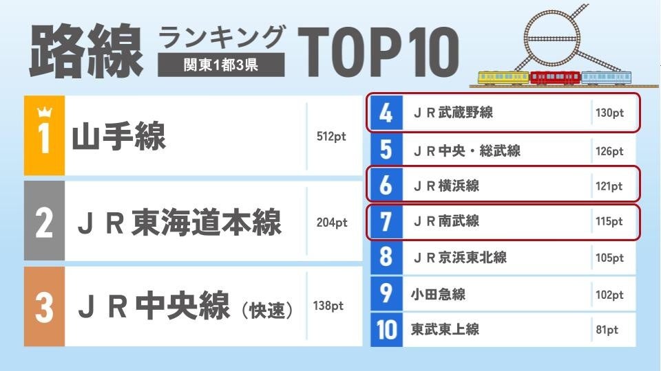 ・路線はTOP10に入ったバイパス路線に注目(4位:武蔵野線、6位:横浜線、7位:南武線)