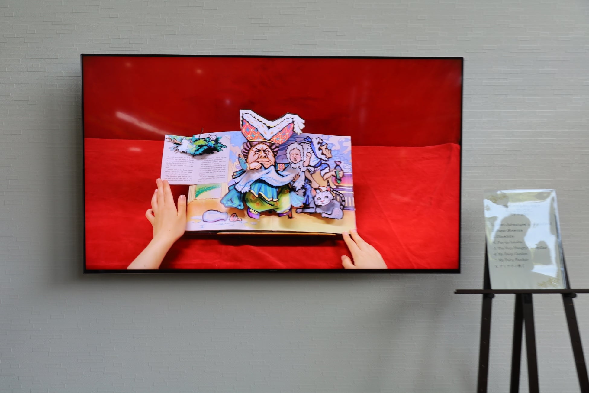 なお、大きな「しかけ絵本」は繊細なつくりのため直接触れることはできませんが、今回、人気投票の対象となっている8冊について、仕掛けの様子がよくわかる映像をご用意しています。スタッフが1ページ1ページ絵本をめくって撮影し、ストーリーにあう音楽をつけた8分程度の映像作品になります。映像を通して、展示されているページ以外の仕掛けやストーリー、絵本の世界に触れ、ワクワクした気持ちになっていただけたら嬉しいです。