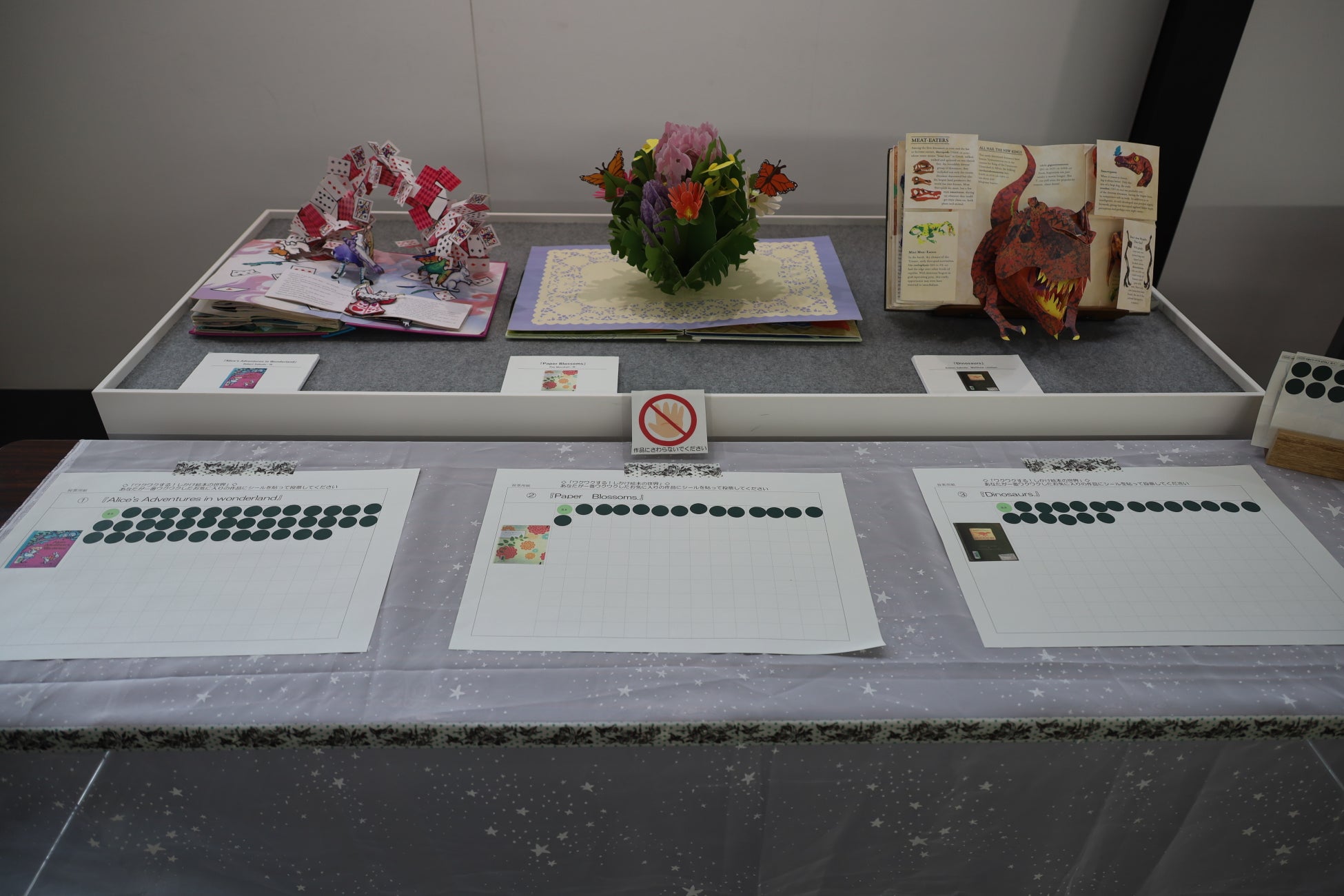 展示コーナーでは、紹介する8冊の「しかけ絵本」から、お気に入りの1冊を選んでシールを貼って投票する「人気投票」を開催中です。みなさんの「推し絵本」はどれですか?