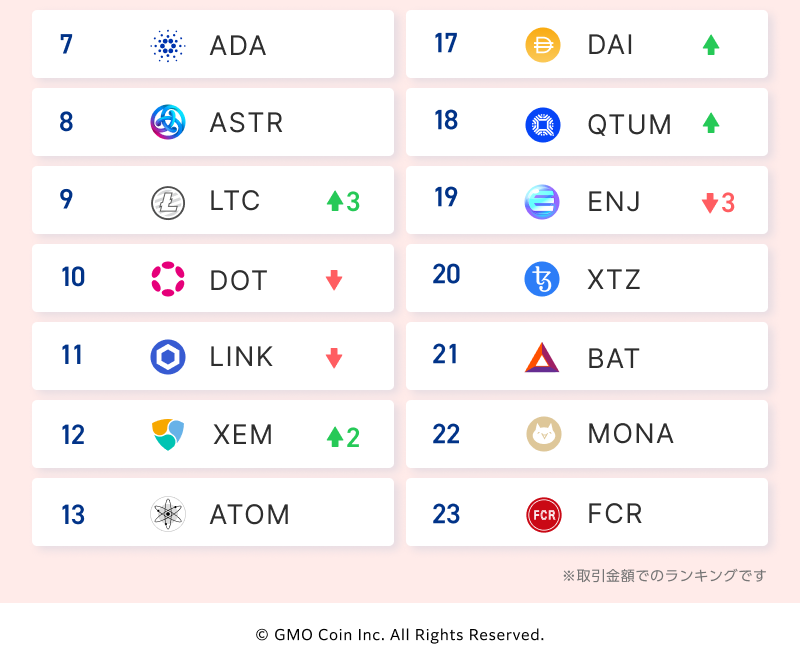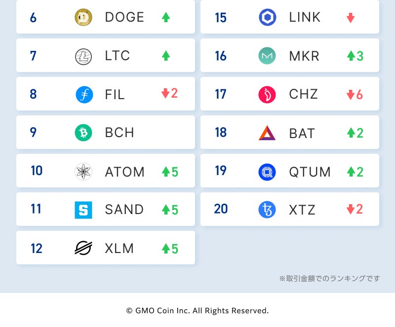 GMOコインの「販売所」および「取引所(現物取引)」における2024年8月の取引ランキングをご紹介します。