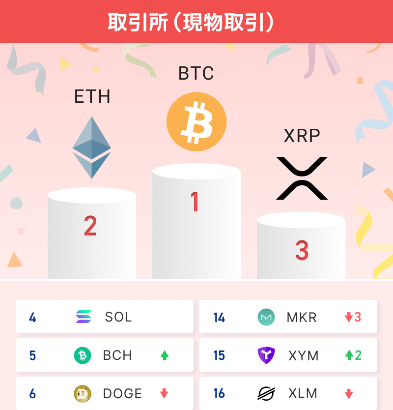 2024年8月の暗号資産取引ランキングは、「販売所」「取引所(現物取引)」ともに1位ビットコイン(BTC)、2位イーサリアム(ETH)、3位リップル(XRP)となりました。