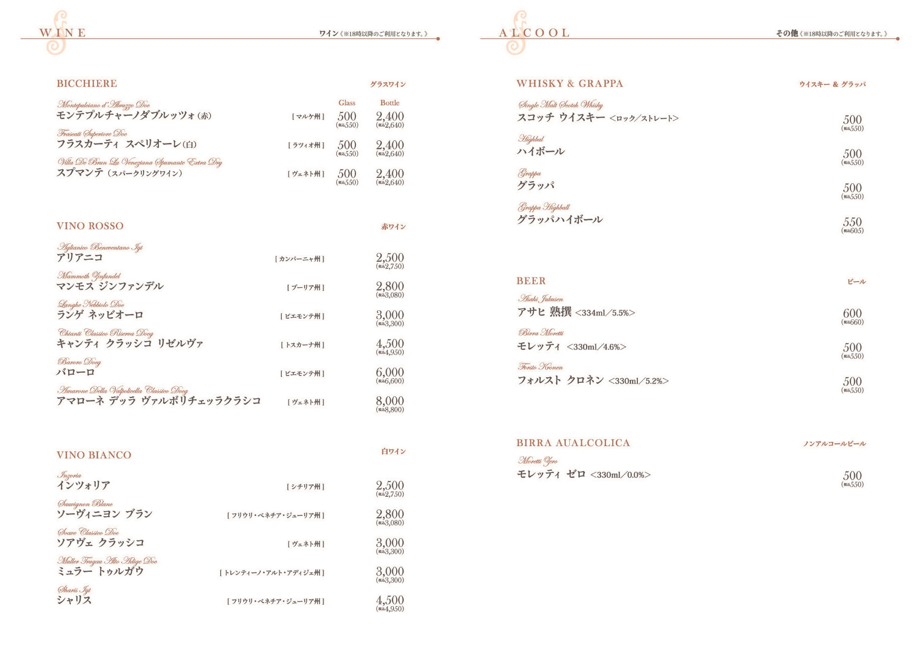 ※コースは予約制となり、2名様からのご注文となります
