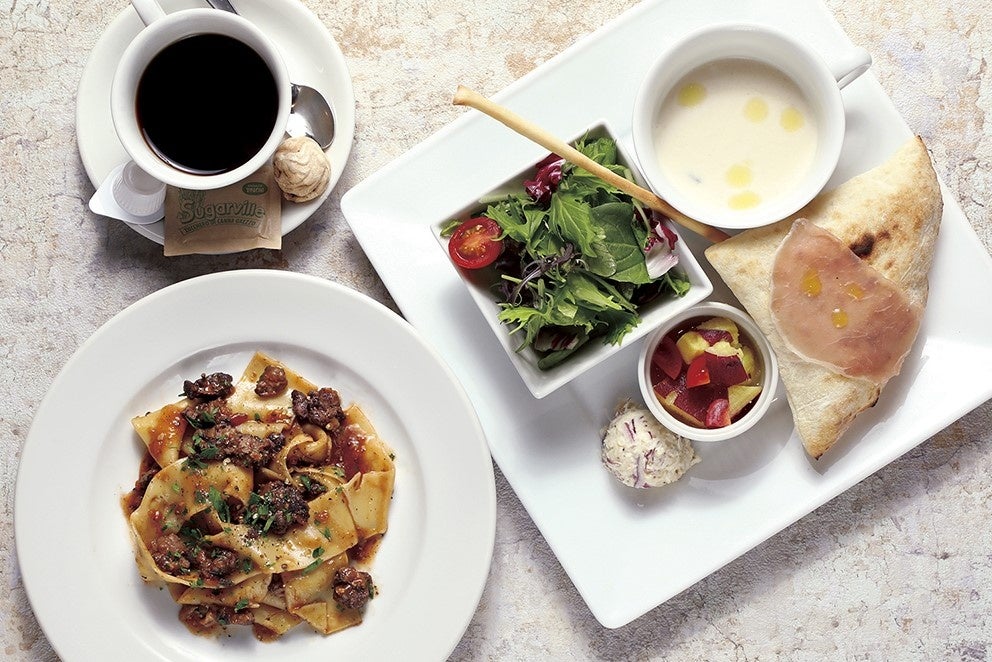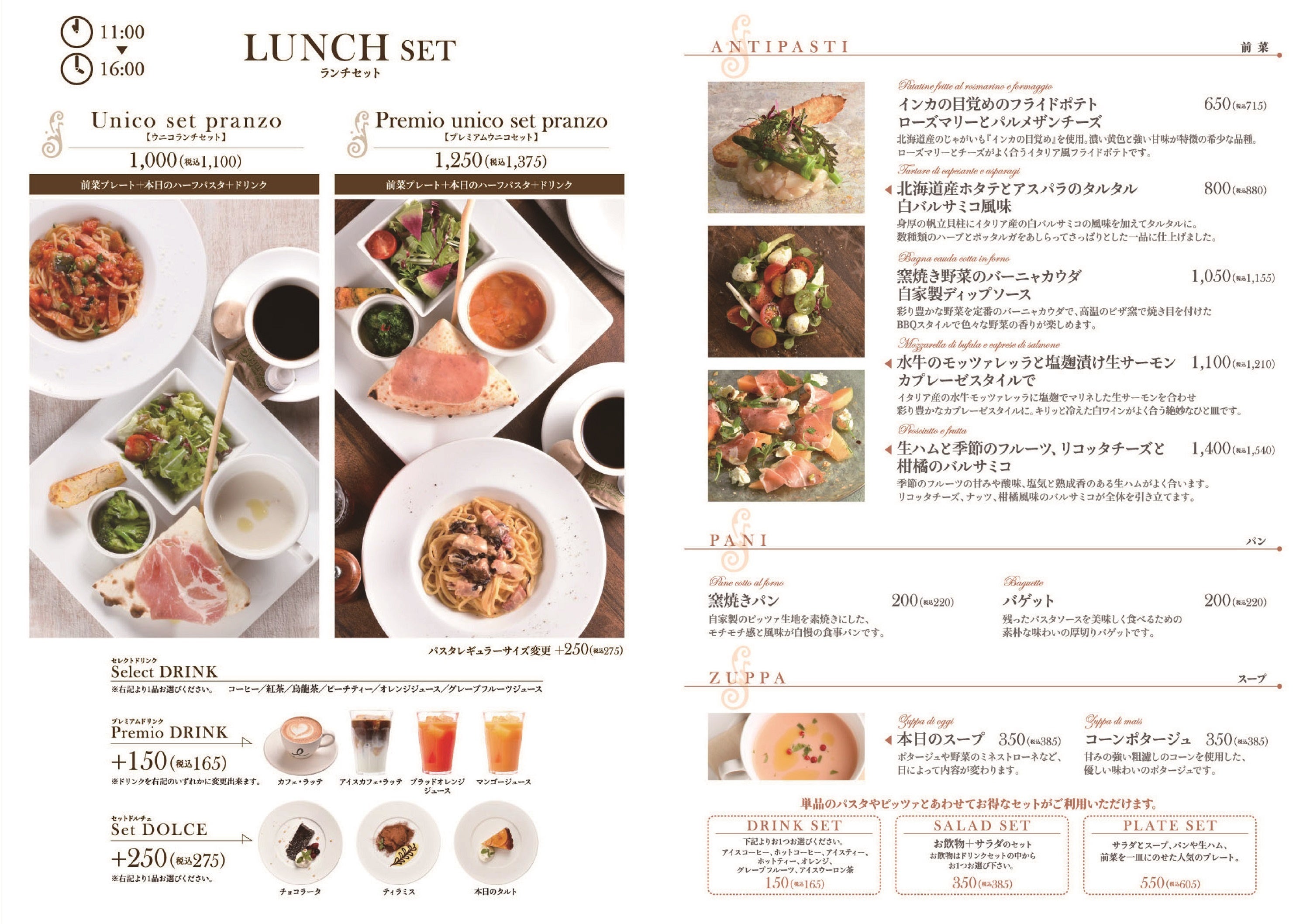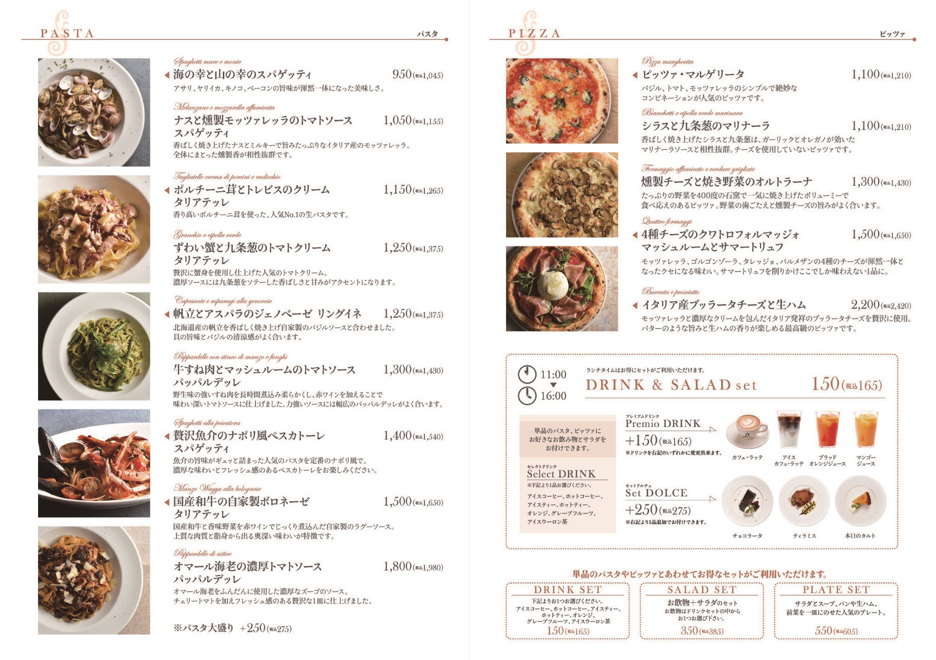 旨味の強い腿肉を粗びきにし、赤ワインでじっくり煮込んだコク深いソースと、幅広パスタのパッパルデッレを合わせ力強い味わいに仕上げた「鴨肉のラグー パッパルデッレ」は、単品だけでなくワンプレートに盛り込んだ前菜5種とドリンク付きの「季節のピアットウニコ」としてもご用意しております。