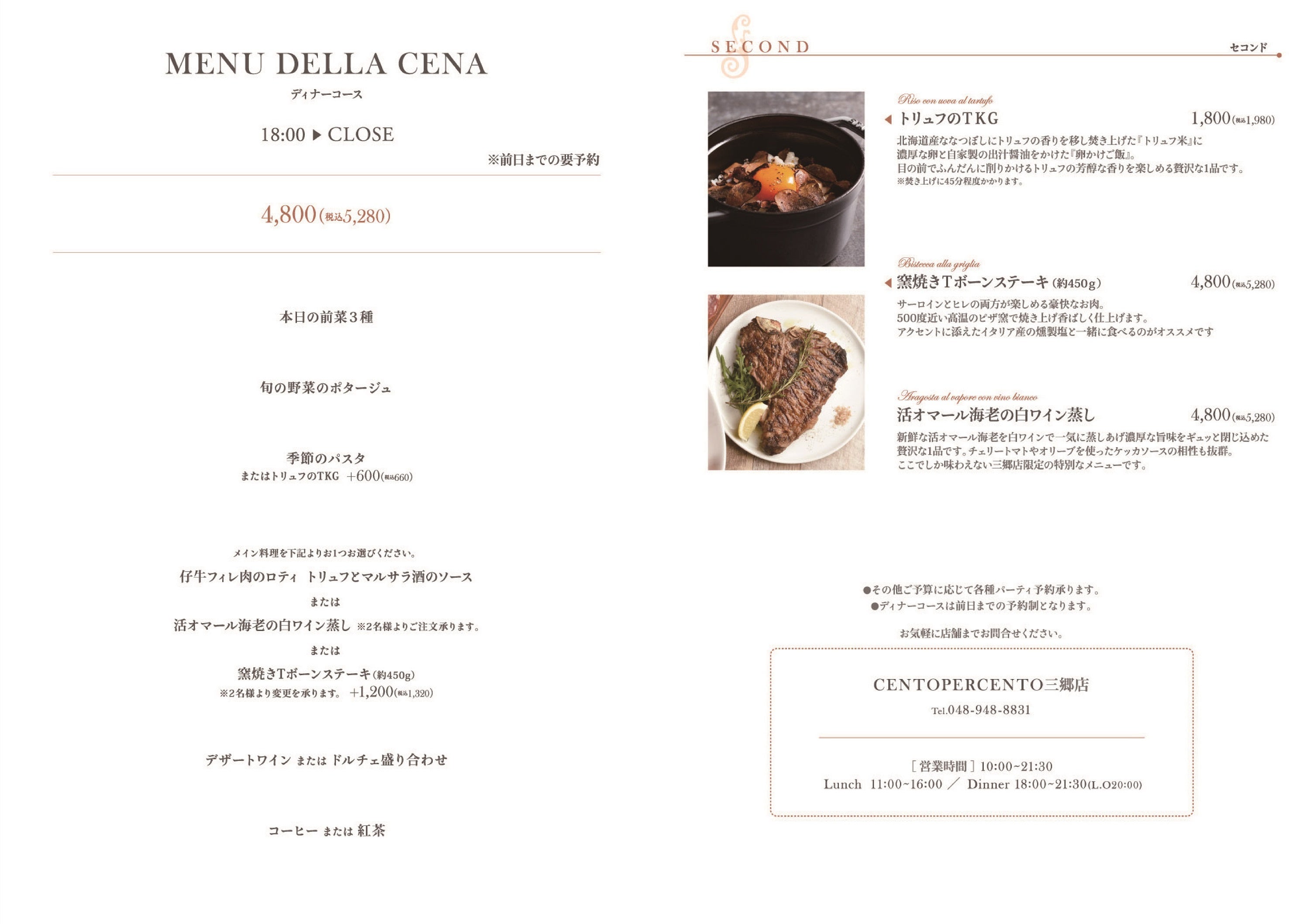 ご家族や大切な人と過ごす時間に、遠出をしなくても身近な「チェントペルチェント」が選択肢のひとつとして選ばれるよう、飾りすぎないあたたかなサービスとお料理で100%のおもてなしをご提供します。