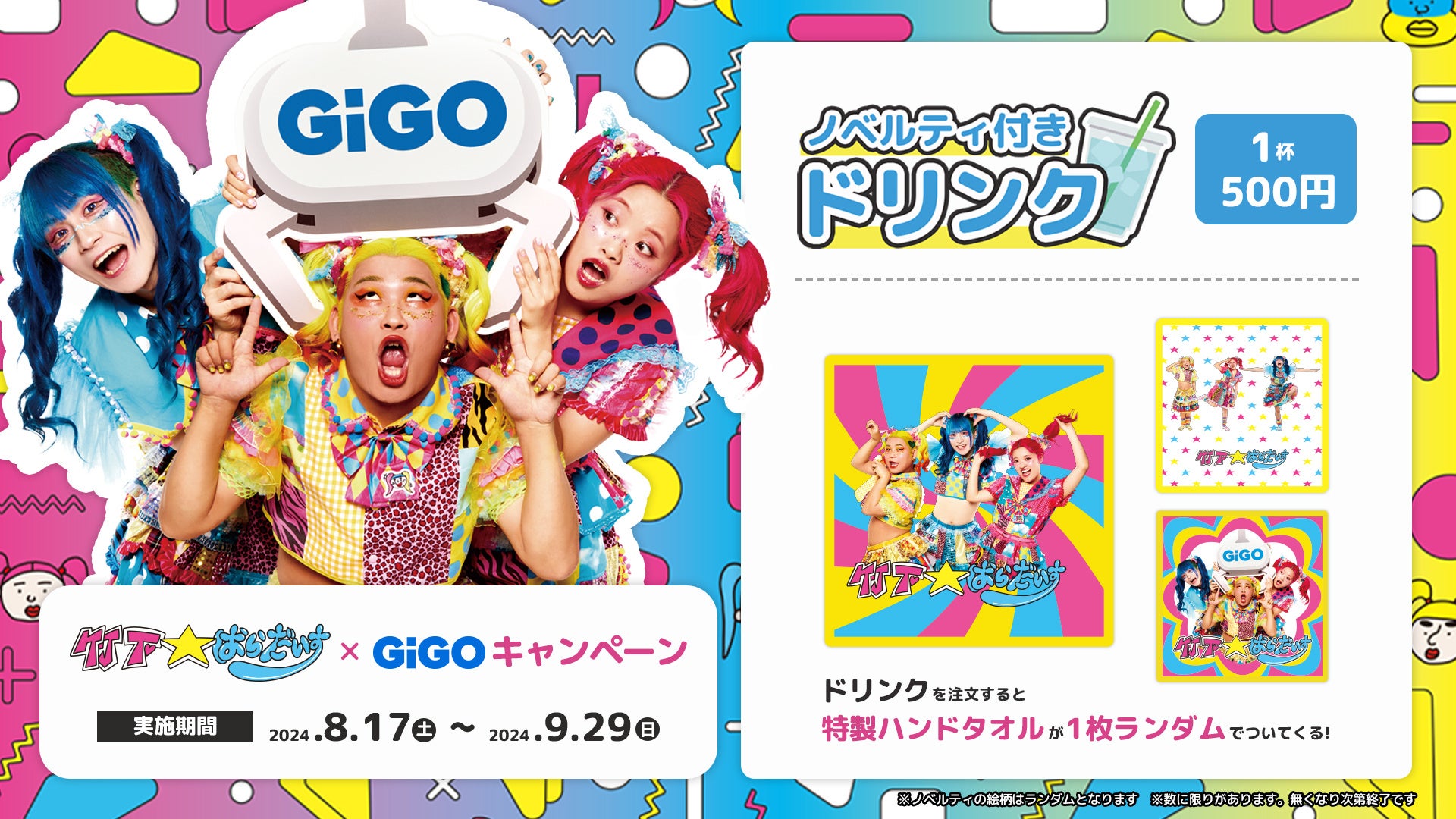 株式会社GENDA GiGO Entertainment(本社:東京都港区 代表取締役社長:二宮 一浩 以下、当社)は、GiGOグループのお店におきまして2024年8月9日(金)より、2024年7月20日(土)から初の全国ツアーを開催する”オモロカワイイ”で世界を埋め尽くす☆原宿クリエイターアイドル『竹下☆ぱらだいす』とのコラボレーションキャンペーンを開催いたします。