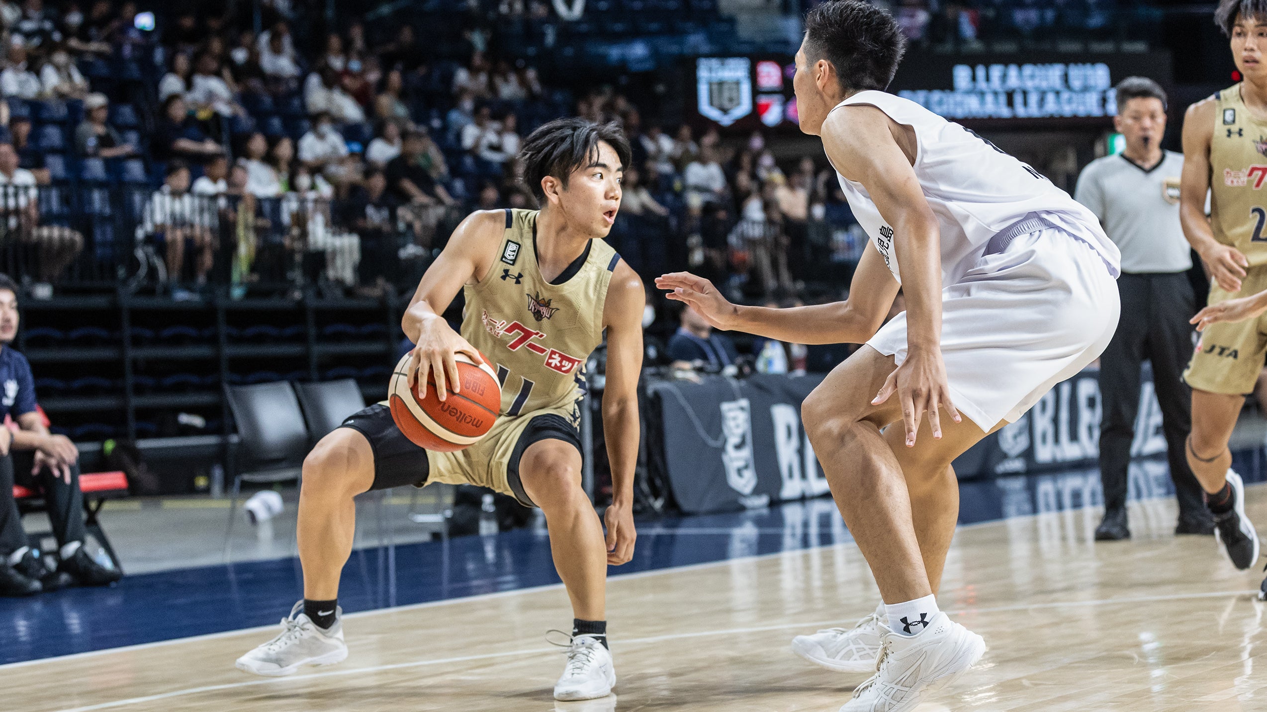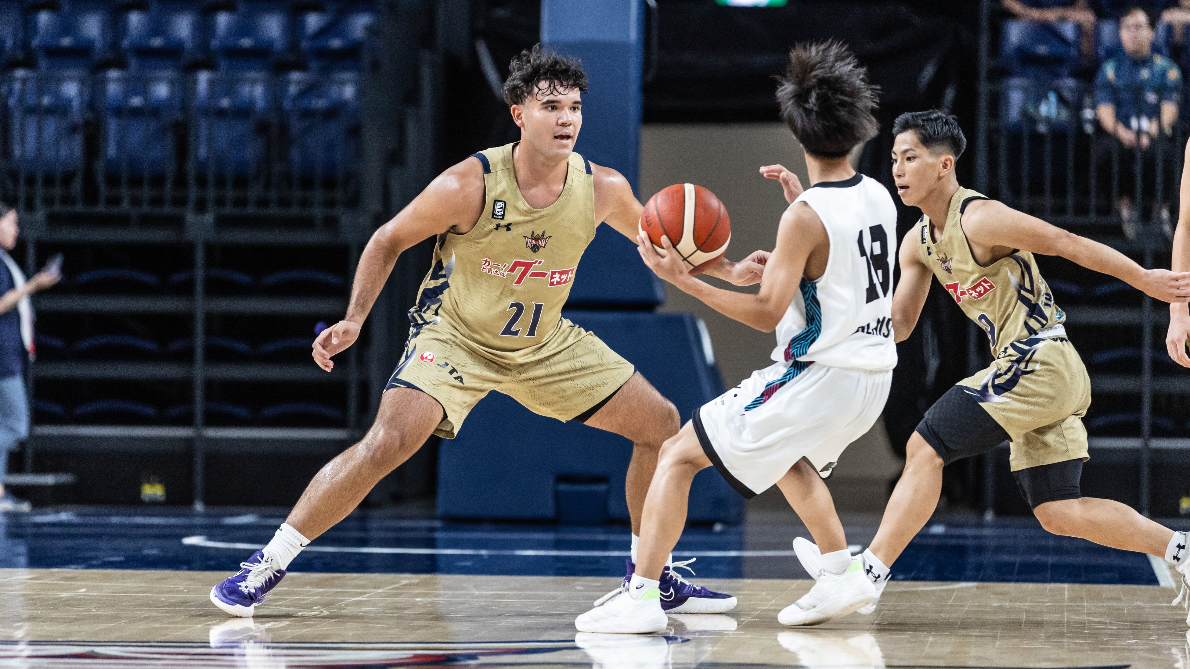 沖縄開催1日目となる7月20日(土)の1試合目は長崎ヴェルカU18と対戦。新チーム始動から練習を積み重ねてきた前からハードに当たるディフェンスで#33 長嶺充来選手を中心に長崎U18の攻撃を封じます。オフェンスでは全員でボールを動かし内外で着実に得点を重ねます。#29 宮里俊佑選手は緩急を活かしたドライブで存在感を発揮し、#99 新垣元基選手が3Pシュート4本を含む14得点を挙げ、113-49で勝利しました。