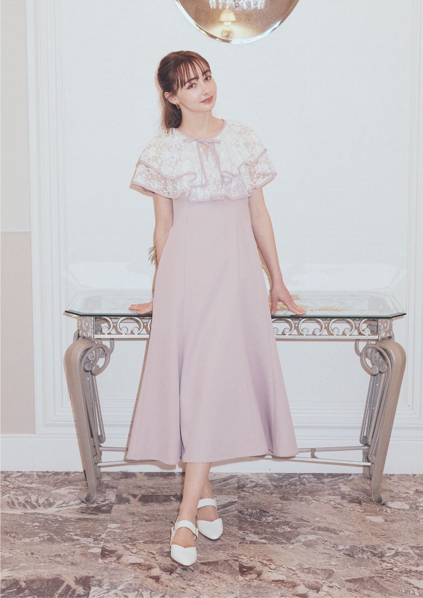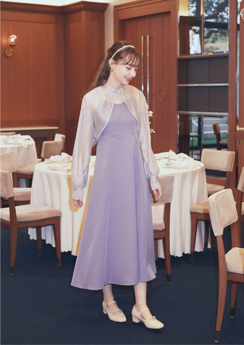 パイピングのレースボレロにキャミワンピースのセットアイテム。