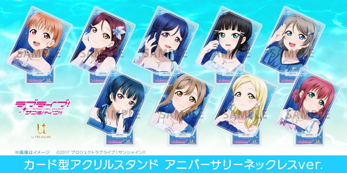 『ラブライブ!サンシャイン!!』とコラボレーションした、「アクリルスタンド アニバーサリーネックレスver.」「カード型アクリルスタンド アニバーサリーネックレスver.」も同期間中(2025年2月14日(金)~3月19日(水))予約を受け付けております。