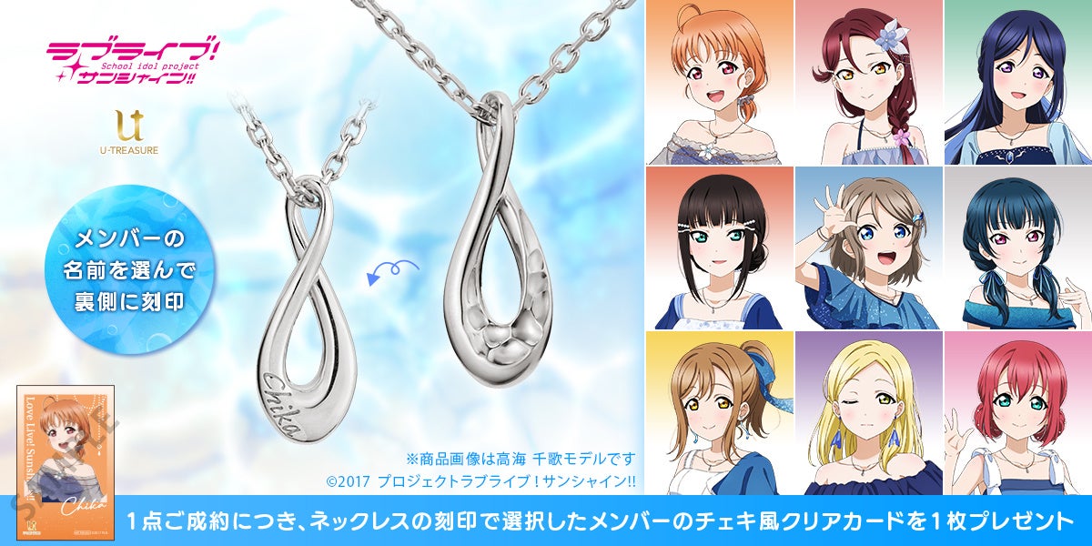 『ラブライブ!サンシャイン!!』Aqours結成9周年を記念したネックレス。メンバーの名前を刻印した「水」と「無限の時間」をイメージしたデザイン。2025年3月19日(水)まで予約受付