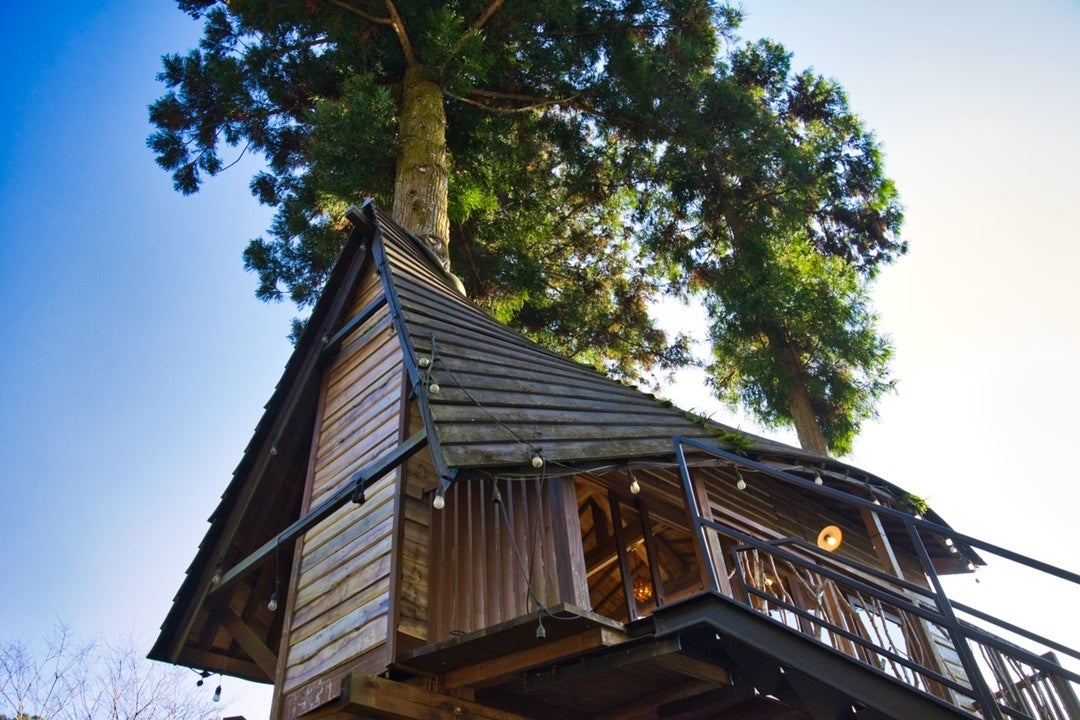 山々に囲まれた、関西初の温泉付きグランピング施設。
