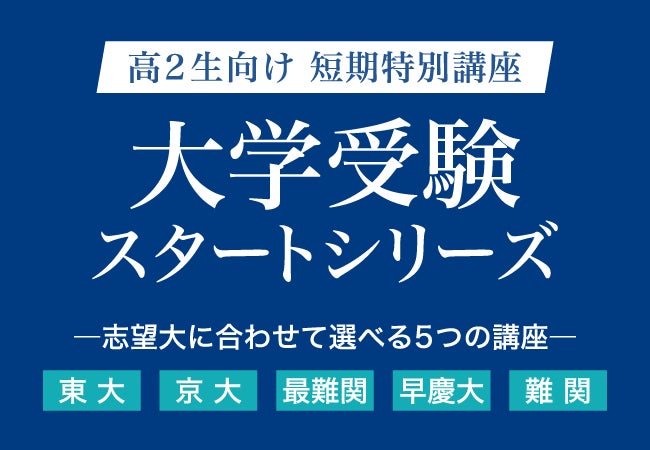 「いよいよ来年は受験生。でも受験勉強って何から始めたらいいの?」と気になり始めた高2生も多いことでしょう。そんな新受験生に最適な講座が「大学受験スタートシリーズ」。志望大別に入試を見すえた対策ができるので、いち早く受験モードに切り替えが可能です。