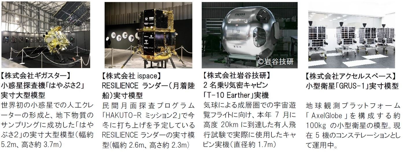 国内外から注目されている宇宙探査機や成層圏での宇宙遊覧用キャビン、衛星など日本の大型開発製品の特別展示を実施します。期間中はどなたでもご自由にご覧いただけます。